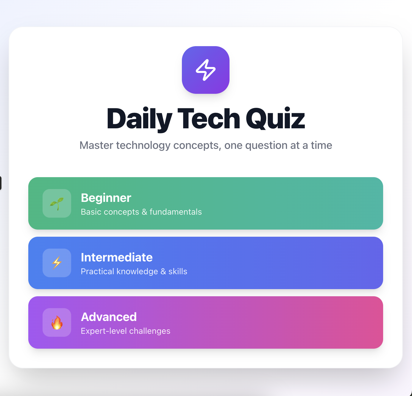 - 커스터마이즈 2 : 어플리케이션 이름을 Daily Tech Quiz로 바꾸고, UI를 해외의 학습 애플리케이션 포맷을 차용해.