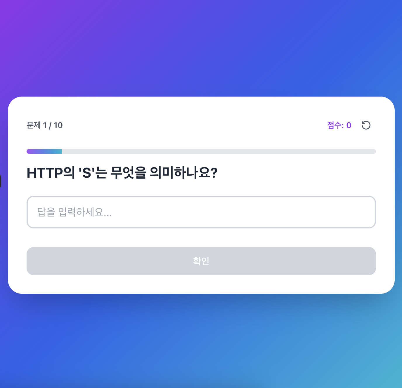 초급~중급 수준의 IT 분야의 퀴즈 앱을 만들어보았다. 정답을 맞추면 컨패티가 터지고, 오답인 경우 정답과 함께 간단한 해설이 표시된다.