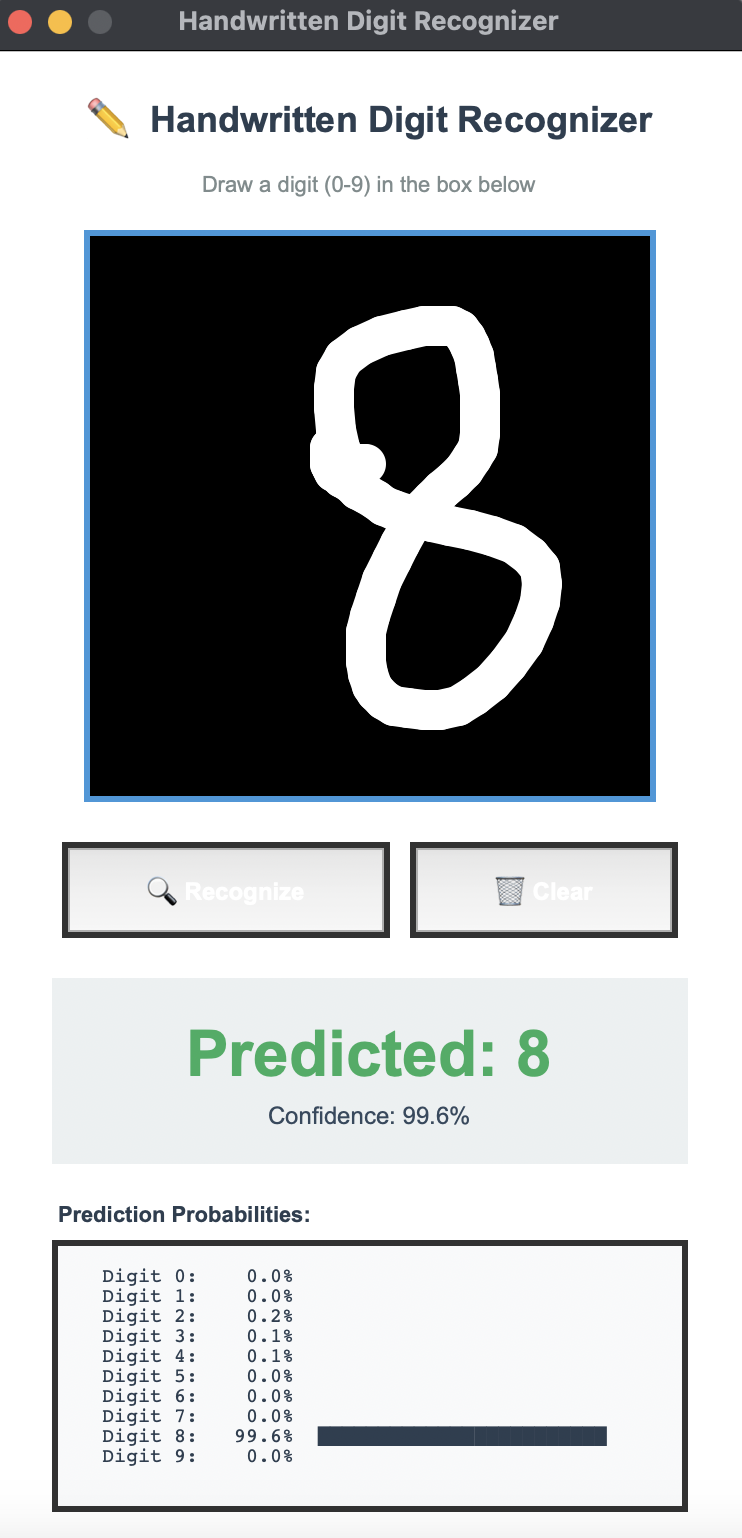 손글씨로 숫자를 입력하면 이것을 인식하는 코드를 만들어서 실행해 줘. 모든 코드와 주석을 영어로 작성해 줘.
