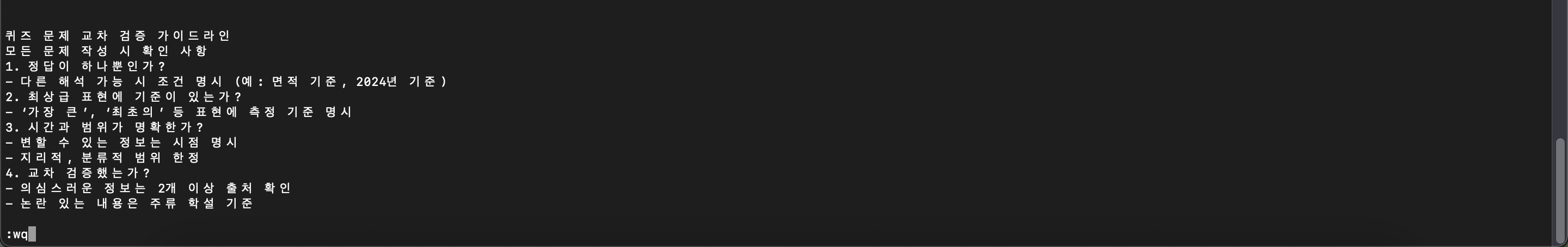 기존 퀴즈들과 같은 형식으로 만들고, 검증 가이드라인을 꼭 지키게 해 줘.