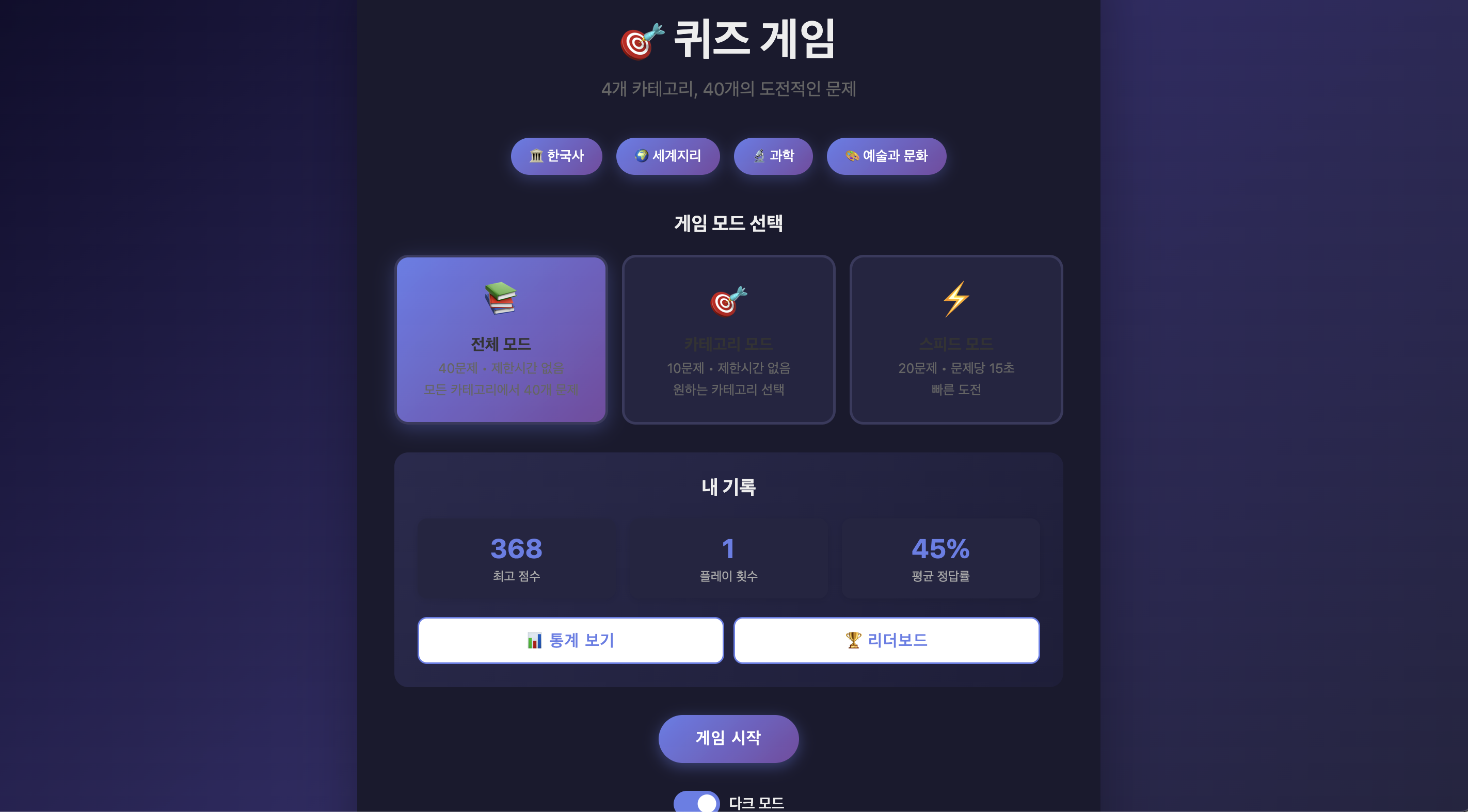 퀴즈 게임의 통계를 관리하는 기능을 하게 해 줘.