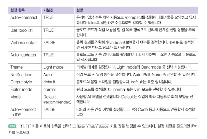 - 컨텍스트 : 클로드 코드가 현재 세션에서 기억하고 있는 모든 대화 내용과 작업 정보이다 (임계값에 가까워지는 경우, 클로드 코드는 자동 압축을 수행하는데, 이때 대화의 일부를 요약하는 과정에서 정보 손실이 발생할 수 있으므로 수시로 Context left until auto-compact: 9%와 같이 터미널에 표시된다면, 직접 압축하는 것이 좋다)